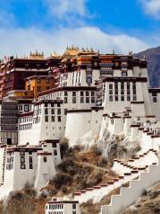 布达拉宫,雪域高原之明珠,藏传佛教之圣地,建筑艺术之瑰宝,浴火重生之传奇,这座庄严肃穆、富丽堂皇的高原圣殿,以其浑厚流长的藏地文化、博大精深的佛教信仰,感染着八方来客、四海宾朋,在其脚下顶礼膜拜、驻足喟叹。布达拉宫早已不是一座单纯的宫殿,而是一种信仰的化身、精神的象征,相传布达拉宫所在的红山是大慈大悲观世音菩萨的道场,在佛门的意识里,它的存在,有如菩萨亲临(藏语布达拉,意即观世音菩萨居所),朝拜布达拉宫,可以改变未来