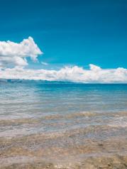 纳木措是每个去西藏的人都要打卡的地方,西藏地方真大,景区也是很霸道,好不容易开了几个小时车到了纳木措景区门口,我们欣喜地以为马上就到了,不不不,这只是一个路牌而已,距离景区还有一段车程呢,别高兴的太早。反正我是不知道后来又开了多久终于到了纳木措湖的一个小镇。令人开心的就是到了纳木措湖的时候天气特别好,好像乌云似乎知道了我的小心思似的,很自觉的躲起来了,给我这个远道而来的客人展示她最美的模样。