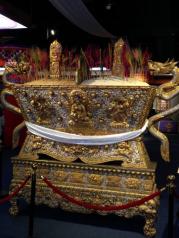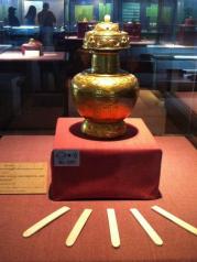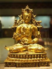 西藏博物馆在罗布林卡正门斜对面,游完林卡可以直接去,地方不大,一个貌似两层的建筑,展品也不多,主要是一些佛教用品包括佛像和礼器,谈不上什么精品,遑论珍品,一个法门寺就可以横扫这里,更多的是一些图片,渲染昔年农奴翻身农奴把歌唱,政治色彩太重反而读不到历史。
