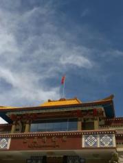 到了甘丹寺后,可以先拍下全景。当地藏民到达甘丹寺后,一部分人选择一条偏上,路有点烂的路走--开始我们也疑惑,后来其他人告诉我们,他们是要转山;另一部分人选择平着直走,走的石板路/水泥路---这是到寺庙的线路。个人觉得作为游客,选择寺庙线路即可。