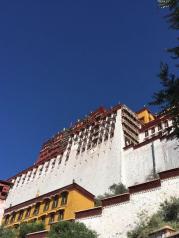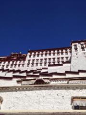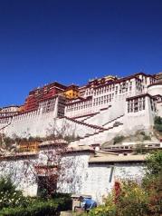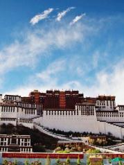 红砖白墙------这就是布达拉宫。坐落于世界屋脊、以雪山和蓝天为背景,它的厚重证明了它的庄严,它的红与白彰显了它的纯洁,它的高耸入云表明了它的神圣。当我走向它,似乎懂得了松赞干布和 文成 公主的爱情故事;似乎明白了为何它能成为当代人梦一样的地方,为何它是神圣的代表,纯洁的代表以及信仰的凝聚