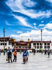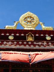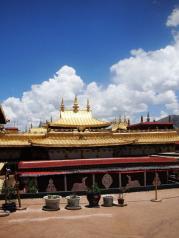 进大昭寺参观,一定要按照藏传佛教习惯顺时针前进,每天下午在大昭寺二楼都会有喇嘛辩经,如果恰好下午进寺,可以循声而至。在大昭寺二楼露台上可远观布达拉宫,拍照超赞。 每年藏历正月十五的酥油花灯会和藏历十月十五的吉祥天母节是大昭寺最热闹的时候,不可错过。大昭寺内诵经的场景,我们来的时候还是太早,诵经一般是在下午的时候开始,能不能碰到完全要看运气了,在大昭寺看一场诵经对于藏民意义和我们在天安门广场看升国旗是一样的意义