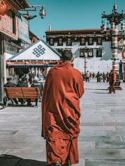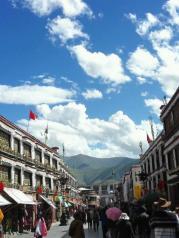 其实,八廓街这条街原本只是单一围绕大昭寺的转经道,藏族人民称之为“圣路”。这里保存着漫长的历史和独特的风情,每天迎接着来自世界各地的游客和虔诚的藏族人民。它不是宽广的大道,但它却用宽广的胸怀调和虔诚的信仰铸造出一道藏民心中最宽广的道路,它没有车流不息,也没有车水马龙,但是他却有着神奇的力量和磁场吸引着人们。八廓街白天无论什么时候,都有许多的人,当然大部分还是来转街的藏民,有的三拜九叩有的拿着转经筒,念着八字真言沿着八廓街绕着大昭寺一步一步的转的天黑。