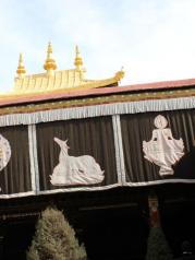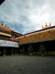 大昭寺在拉萨老城区中心,登顶可遥望布达拉宫。这里是无数藏民的精神信仰中心,是他们的圣地。寺庙占地面积不算太大,给人一种紧凑甚至凌乱的感觉,缺乏布达拉宫那种大气。二层是著名的金顶,真的是金箔。