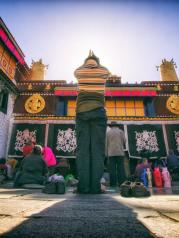 大昭寺,藏语为“觉康”,又名“祖拉康”,是藏传佛教信徒朝圣的终点,在他们的心中,大昭寺之神圣,并不逊于布达拉宫。不论从地理位置上,还是在藏传佛教信徒的心目中来说,大昭寺都是名符其实的藏传佛教圣地和中心,在藏传佛教史上拥有极其崇高而圣洁的地位。此外,寺内有长近千米的藏式壁画《文成公主进藏图》和《大昭寺修建图》,还有两幅明代刺绣的护法神唐卡,为难得的艺术珍品。到了这里不仅能够感受到藏传佛教的氛围,还能欣赏一件件艺术珍品,岂不美哉!