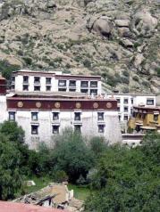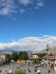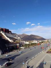 药王山,藏语称:夹波山,意为:山角之山。位于布达拉宫西南侧,海拔3725米,与布达拉宫所在的红山咫尺相对,两山之间有北京路穿过。其半山腰有观景台,是拍摄布达拉宫的最佳位置之一,同时也是50元人民币的背面图案拍摄地。