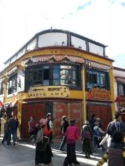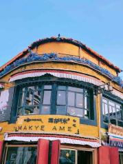 去八廓街,有一个地方一定要去看一看:玛吉阿米酒馆。八廓街的建筑大都是白色的,只有八廓街东南角有一栋涂满黄色颜料的两层小楼。这里就是六世达赖喇嘛仓央嘉措的密宫。