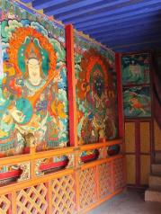 公元八世纪,文成公主入藏时带来的释迦牟尼十二岁等身像于大昭寺内,成为大昭寺的镇寺之宝,是游客及朝圣者必不可错过的看点之一。此外,寺内有长近千米的藏式壁画《文成公主进藏图》和《大昭寺修建图》,还有两幅明代刺绣的护法神唐卡,为难得的艺术珍品。