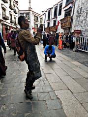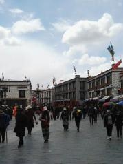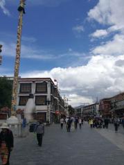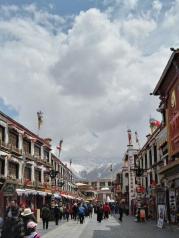 大昭寺出来一圈都是八廓街,最多的就是卖各式手珠的,藏式服装和记念品,很多藏人手执串珠,转经筒顺时针走向大昭寺,口中还念念有词。