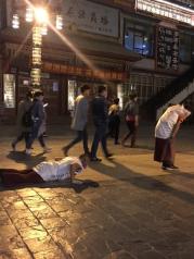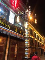 刚下飞机,到酒店放好行李之后就迫不及待要出去感受我期待已久的西藏……行程第一个点就是去逛八廓街,最具代表性,拉萨最热闹的商圈……在八廓街上漫步,看虔诚的人们一路跪拜很神圣……夜晚的灯光漂亮,游人络绎不绝……一开始我是骑着摩拜单车过去的,后来由于游人密集,放下了单车,步行去感受这地道藏味儿
