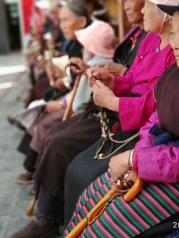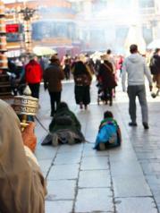 矗立于八廓街, 眼泪不停地往下流, 游人投来异样的眼光, 匆匆路过的游人只是在不停地拍风景和自拍。 我就一直站在玛吉阿米的十字路口, 看着这群朝圣的人, 我什么都没说, 不知道为什么就落泪了, 好多年没有这样哭过了。 可能是因为难以有事触及灵魂了。 我可以不知道自己喜欢什么, 但我一定知道自己不喜欢什么。 看着落寞地两个残疾的朝圣者, 心里有痛楚和同情, 我自认为自己是一个“铁石心肠”的人, 重来不给乞讨者钱。 今天我“大方”地一人给了他们十元钱, 虽然钱不多, 但总觉得有种救赎了自己的感觉。 心里更有无尽地佩服, 看着最后一图那一位只剩一只脚的朝圣者在夕阳下孤独的背影和拉长的影子, 我相信了
