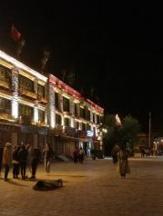 这次的酒店就在八廓街里,出门一拐就到了刷身份证进入在大昭寺地界外围的安检门。晚上十一点时才得空进入,但也正好可以用安静的视角体验这藏文化风情。有磕长头的藏民,手中的木片在趴匐到地面时在深夜发出虔诚的声音;有时尚的汉族小姑娘穿着藏服在羞涩地凹造型……深夜的八廓街似乎更能体现出她的风情。