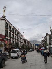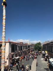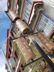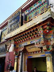八廓街——从扎基寺出来,我们前往下一站,丹杰林路。 丹杰林路走到头,就是八廊街和大昭寺广场,这是一条重要的商业街,随便一个档口,不管多少平方,转手费都是一百万起。 这边林立着藏式建筑的商铺,卖一些藏区特色的衣服鞋帽围巾,唐卡蜜蜡宝石纪念品,还有一些有名的餐馆,光明港琼甜茶馆,雪域餐厅,刚吉餐厅都在这条街上,来来往往的游客很多,这里很热闹。