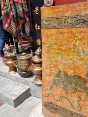 八廓街在拉萨太出名了,大昭寺出来一圈都可以认为是八廓街,街上两边都是各种小饰品,卖藏地特色的小东西的,像绿松石、佛珠、手链、转经筒、银饰(白铜,藏族人称白铜为银)、披肩,还有很多从尼泊尔带过来的衣物等。长长的一条街,左右两边全是这样的铺子,铺主大多都不是本地人,晚上还有好多摆地摊的(好多都是趁着旺季特地来拉萨摆地摊儿的)。可记得要砍价,一个小饰品开始要价10元,接着就是8元,接着就是10元两个,再下去就是10元三个了,你懂得,所以千万不要急着下手,货比三家。