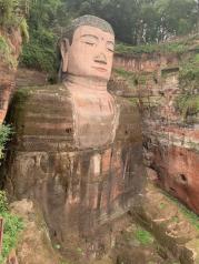 乐山大佛真的值得一看,太大了,不看到它是想像不到它的大、它的壮观!感恩前人给我们留下这么壮观的历史印记,面对着湍流不息的江水,风景也是绝美的,只是景区小了一点