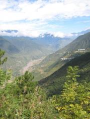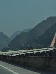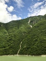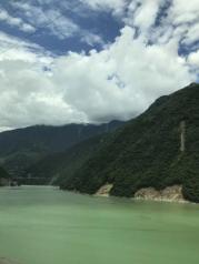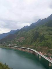 大渡河蜿蜒蹦腾在川西高原的群山之中,亿万年的时间冲刷出了宽阔雄伟的河谷,川藏线就是沿河谷而建,时而盘山而上入云,时而盘旋而下远去。