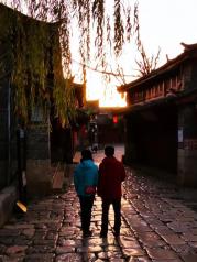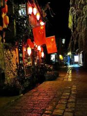 四方街是古城最老的街道,是一个长方形广场,是原来茶马古道交易中心,现在变成热闹的商业街,白天繁华,夜晚灯火通明,河边的酒吧格外热闹。 但拐角的小巷子里却是格外安静。