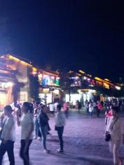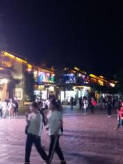 丽江古城四方街晚上比较热闹,当地少数民族大姐大妈组织跳跳舞,经常可以看到这些纳西族老奶奶围成一圈,跳着民族舞蹈苍老的脸上布满纵横交错的沟壑,但却个个精气神十足这也是一种锻炼身体的方式。路过的旅客也会跟着带动下气氛,气氛比较活跃。适合饭后散步
