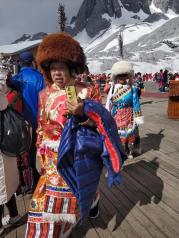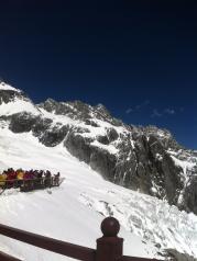 玉龙雪山还是值得一去的!好不容易坐上了大巴,到了雪山脚下还要排队等缆车。缆车大概排队等了快一小时,恰好遇上天气不好,缆车下了以后,栈道没有完全开放,只爬了一小段就到顶了。虽然一上大巴就开始吸氧预防高反,但是缆车下来爬栈道的时候还是有轻微反应,呼吸加重头有点昏,走路也略吃力,症状不严重所以不影响行走。