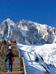 玉龙雪山建议先去坐大索道登顶看看,下大索道后直接坐景区交通去蓝月亮谷看看就结束游览了。玉龙雪山大索道终点4650.还要再走登顶木道1000米左右就可以途中看到冰川了大索道旺季时要等待两三小时是经常的,我们等了一小时。买票后要根据票面指示时间排队上景区交通车,很严格。