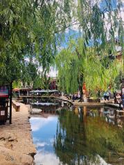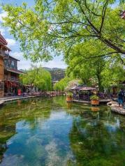 束河古镇又名龙泉村,纳西语称“绍坞”,位于 丽江 古城的 西北 部,当年茶马古道时便是重要的驿站。古镇依山傍水,幽静古朴,屋舍错落有致,巷道间流水潺潺,后山是 玉龙雪山 的余脉,是山、水、人和谐相处相生的美丽胜境。