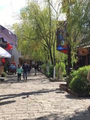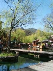 四方街就是束河古镇里的商业街。不过这个商业街不同于别的地方的商业街,它,风景很美,如画,如画啊!路中间有小溪,小溪上架着一条条小桥,路两边的商店故意装饰得很文艺,所以这里又可以说得上是充满文艺气息的美丽商业街。