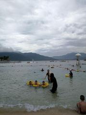 分界洲岛的海水很清澈,小朋友们喜欢的海洋动物海豚,海龟,都可以亲密接触水上运动也是很刺激,做船到达岛上看着海景十分惬意。悬崖餐厅,自助餐不咋样,但是坐在悬崖边吃饭看着海景是一件很惬意的事。
