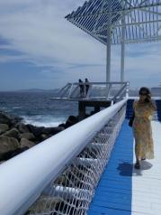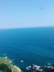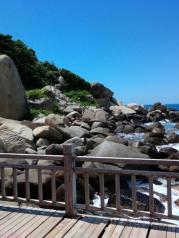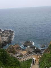 分界洲岛的海水真是美,从山上看下去,岸边都是绿蓝白的,一点都没有污染!真的!太安逸了!保护得太好了,希望下次,不,永远,希望永远都能这么好!站在英雄亭往南望去,远处海面出现一条长长的海水颜色分隔线,一边的海水蓝些,另一边略浅,难道分界洲连海水也跟着分界?