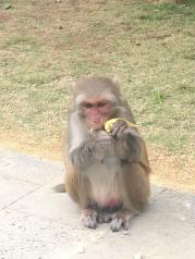 在南湾猴岛遭遇意外偷袭:宝宝站在小卖部门口,手里拿着刚买的冰淇淋,突然被不知哪里窜出的大猴子以迅雷不及掩耳之势抢走了,同时小臂留下了两道血印好在并无大碍,处理好伤口还打了疫苗,带孩子的家长一定要小心哦。