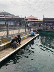 从火车站出发有班车,或者乘坐去新村的车,都可以到达猴岛,建议早点去,坐缆车排队的时间好长啊。岛上可游览的区域并不大,上岛看了两场表演,基本就结束了,坐船回来了。