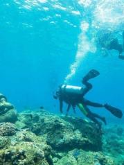 从海口去的分界洲岛,180多公里,三亚去近差不一半的路程。来往岛的交通渡船非常多,不用等。岛不大,景观还是不错。登上山顶可以坐电瓶车,40元一位,可以站站下车,观赏完风景再上车也行。徒步登山不需要要太高的体力要求,毕竟山不高,慢慢走,全程90分钟左右(包括绕岛的时间),观海浪、赏奇石。只是潜水、水下观光等价格较高,令不少人望而却步。