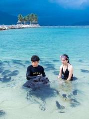 分界洲岛是个潜水、休闲的好去处,5月份很便宜,人也不是很多~坐船十几分钟就到了~老公跟姐夫都潜水下去了,我潜到一米晕过去了,心脏不好的人一定不要下去尝试,不会游泳的也千万不要下去,真的有种要死的好觉,但是其他玩的都很好,还有动物表演,很可爱!