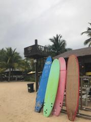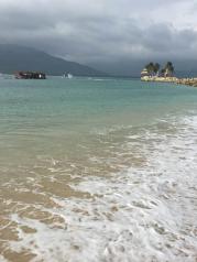 分界洲岛的水非常美,海滩砂子细腻,特别是今天天公非常作美,太阳不算大,上午玩了深潜,海洋舞台,在海边漫步,下午太阳感觉有些厉害,可是还是阻挡不了游人高昂的兴致。特别称赞岛上的工作人员,非常有耐心。在海边买了几张明信片,寄给远方的朋友。