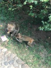 南湾猴岛最大的亮点就是调皮的猴子们,在你身上上蹿下跳,不要自己吃东西不给它,它们会抢你的好吃的好喝哒,哈哈,我们喂食的时候猴子们还算温柔,等着我们一个一个喂,后来猴子越来越多,我怕它们伤到孩子,把所有食物都倒地上了。总的来说猴儿们超级可爱的,真正的亲近自然。