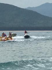 分界洲岛真的特别好,散客自己去从门口要上岛,到离岛,都有志愿者协助,很方便,各种项目玩的也非常开心,套票真的很合适。强烈推荐香蕉船、潜水、水上摩托、拖伞四个项目,安全且好玩。