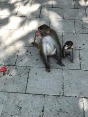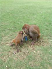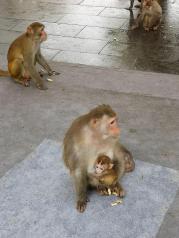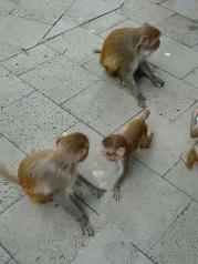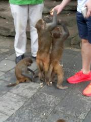 来南湾猴岛有猴子马戏表演,前后会穿插卖字画。工作人员一再叮嘱不要拉开背包,不要吃东西,到处都是虎视眈眈的猴子,一旦有东西吃,直接窜下来抢走,我都不敢给孩子喝水了,看表演时候有只猴子抢走了一位观众的袋子,还有一只猴子在和观众抢包时候抓伤的人家的胳膊,呲牙咧嘴的,挺吓人的!如果性格温和一些还是很可爱的~