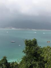 到了南湾猴岛的时候还要排队坐缆车,等了两个半小时,都要累坏了。不过缆车时间挺长的,跨了一个海还有两座山,风景很好,值得做一次。岛上环境优美,猴子随处可见,就是岛小了点,一会就转完了。回程缆车人也超级多,我们做得船,人也不少,需要先做电瓶车到码头在乘船,但是速度快,距离很近,非常方便。