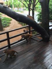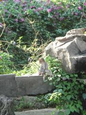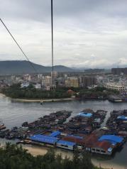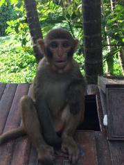我们进入南湾猴岛是先坐索道,在索道上可观看妩媚多姿的椰树、天然海滨浴场、素有“海上街市”之称的渔排风情。索道带我们跨过海峡,来到猕猴的家园,通过参观感到居住在这里的猕猴很幸福!环境优美,设施完善,有自己的游乐场,游人还提供零食。少数攻击游人的猕猴会被关入拘留所,失去自由;它们中的骄骄者还要为游人表演杂技节目,取悦游人。