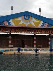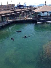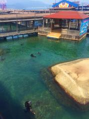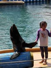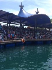 分界洲岛适合亲子旅游,人也不是很多!就是海洋剧场的表演太短,配套的珊瑚和捞瓷展览可看性也一般!需要喂海龟和海豚亲密接触需要提前订!另外建议订景区车票,这样不需要爬上山顶!岛上吃的东西很多,也可以考虑住别墅!