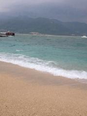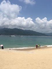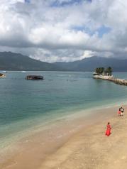一大早去就去分界洲岛了,一路上阳光炽热,心也炽热一路行走,穿越黑咕隆咚的牛岭隧道步行7公里来到售票处,再集体搭船到对岸,在男同胞们的全程协助下,大家终于来到目的地啦。岛上有众多珍稀动植物和丰富多彩的游乐项目,可观光摄影、潜水拖伞等等。别看我们走了那么久的路,事实上从悦会所的别墅区私享沙滩上看,分界洲岛就在我们对面噢~ 悦会所私享沙滩,对面即分界洲岛。