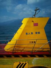 分界洲岛上有海底观光潜艇、海豚湾、无敌海景木屋、珊瑚馆以及各种水上活动项目,三岔口到分界碑我们乘坐的电瓶车,往返票价为30元一人(自费),分界碑旁的露天咖啡座是一个可以发呆的地方,个人感觉非常不错!