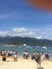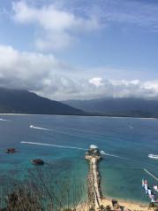 到达分界洲岛后司机为我们购买了门票、船票,我们乘坐游轮独自出发去往分界洲岛。在码头上遥望就可看见分界洲岛,所以快艇还没坐够就准备登岛了。分界洲岛被称为是浮在南海上的美丽遗世孤岛:蓝色的海水,白色的沙滩,硕果的椰林,彻底颠覆了我们这些北方人对大海的认识。
