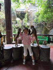 我们来南湾猴岛的时候是还下着雨,虽然不能好好的在揽车上看风景,不过孩子看的很开心,她很喜欢小猴子,在表演的地方跟小猴子拍了照,平时很少看到这种放养的,还有就是一定不能喂东西,不然猴子都会跑过来,有点吓人。