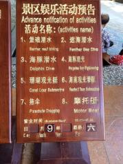 个人比较喜欢分界洲岛,蓝天碧水沙滩,很惬意,就是什么也不做也很舒服的。推荐先去海洋馆,都是养在海里圈起来的,算是比较有特色,最不能错过的是表演,很精彩。其他时间可以去潜水,玩玩海上游乐。
