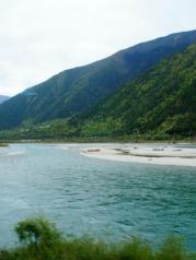 春天的尼洋河充满生机,缓缓的水流绕过高高的河床,岸边的树木刚刚发芽,初春的黄色、蓝色、还有一丝的绿色组成了一幅充满生命的画面,背后的青山藏在白云间若隐若现。现在还不是桃花大面积盛开的季节,等到春来报,河岸上姹紫嫣红造就了如诗如画的锦绣山河。相比于雅鲁藏布江的波澜壮阔,尼洋河是秀美的,宛若一位花季少女,从源头的雪山静静穿过原始森林,悄悄地滋润着工布江达这一片的大地。