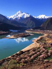 南迦巴瓦峰是林芝地区最高的山,是全球海拔排名第15的高峰,被《中国国家地理》评为“中国最美雪山”。这里山顶冰川高耸、形状俏丽,山间常有云雾缭绕,而山下则是植被茂密的西藏江南,景色优美。这里每年春天会有桃花开放,拍摄花朵掩映下的皑皑雪峰,也是很多摄影师的最爱。