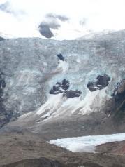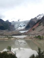 米堆冰川,是距离国道最近的冰川,景色怡人,小溪沿路而下,流水湍急,路途有牦牛冬天吃的树叶,冰川的下方是一个大的湖。两边的山脉因风化滑坡严重,形成另外的景观。