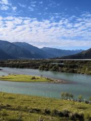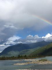 尼洋河河水清澈,沿途美景不断,蓝天白云作背景,高山绿树为舞台,运气好能看到彩虹跨河,绝对令人一生难忘!