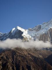 南伽巴瓦峰海拔7782米,世界排名28位,是至今没有被人类征服的雪山,无人登顶。她被称作前世情人,只有看到她的全貌的人,才能见到前世情人。但遗憾的是,许多情况下,峰顶云雾缭绕或全部被云遮住,只有少数情况,她才露出真容,像一个熟睡的少女。山峰虽然没有珠峰高,但由于观看的地势不同,她看起来总是气势磅礴。