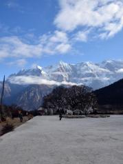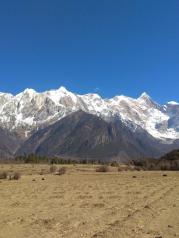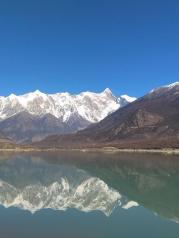 我相信很多人到了这边,都会留一天给南迦巴瓦峰,只为了见识一回神山的日出或日落,他们称为―日照金山!其实我们也预留了,可惜计划没赶上变化!一路上导航时有失灵,后来看似导上了一条小路应该能近一点,却遇上当地山体滑坡,等挖掘机清理了好几个小时的道路才过去。过去没两下又走上一条年久失修,坑坑洼洼的山路,路面冰雪交积,根本不敢上速度。此时感觉前路无穷尽,何时才是头呀!就这样,虽来到了南迦巴瓦峰,却成了纯属路过,而“日照金山”的圣景只能留待以后啦!